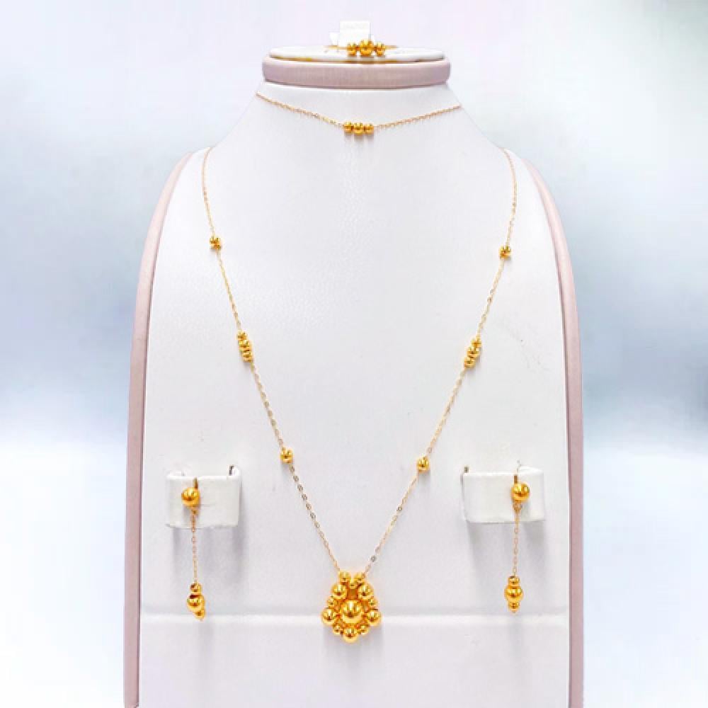 تم تصميم هذا الطقم خصيصًا للمرأة التي تعرف قيمة الذهب الحقيقي، وتبحث عن مزيج ناعم بين الفخامة والبساطة. تصميمه الأنيق يضفي لمسة رقي لا تخطئها العين، سواء في اللقاءات اليومية أو المناسبات الخاصة. الوزن مدروس بعناية ليمنحك شعورًا بالثقة والراحة في آنٍ معًا. والأجمل؟ أنه يناسب كل الأعمار وكل الأذواق.