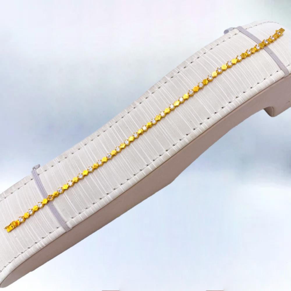 تألقي مع أسواره ذهب عيار 21 بوزن 6.20 جرام من عقد الوفاء، قطعة تُعبّر عن الذوق الرفيع وتُبرز جمال المعصم بتفاصيل دقيقة تفيض فخامة. صُممت من ذهب سعودي نقي عيار 21، المعروف بتوازنه المثالي بين اللمعان والمتانة، لتكون استثمارًا ذهبيًا يحمل بريق الجمال وقيمة الدهر.