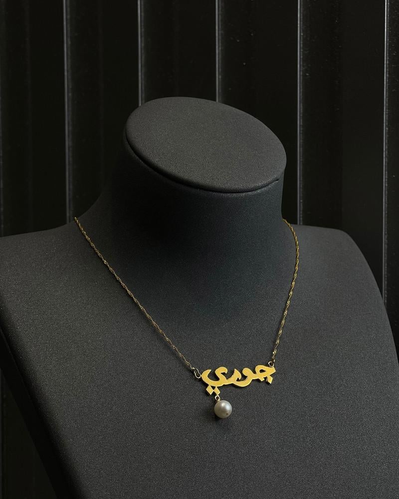 حيث يلتقي الفخامة مع التصميم العصري في كل حرف. اسمك هو جزء من هويتك، فلماذا لا تعبرين عنه بطريقة فريدة؟ نقدم لكِ قطعة ذهبية من العيار العالي، مصممة خصيصاً لتكون جزءاً من إطلالتك الأنيقة.