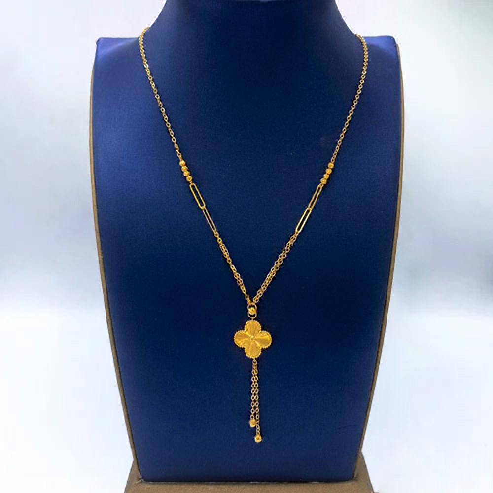 يتميز العقد بخفة تتيح لك ارتداءه طوال اليوم دون فقدان لمعة الذهب الطبيعية التي تضفي سحراً خاصاً على إطلالتك. كما أن تصميمه الأنيق يجعله قطعة يمكن ارتداؤها منفردة لإطلالة بسيطة وراقية، أو تنسيقها مع مجوهرات أخرى لإبراز الفخامة. إنه استثمار في الذوق الرفيع، وهدية مثالية تحمل معنى وقيمة.