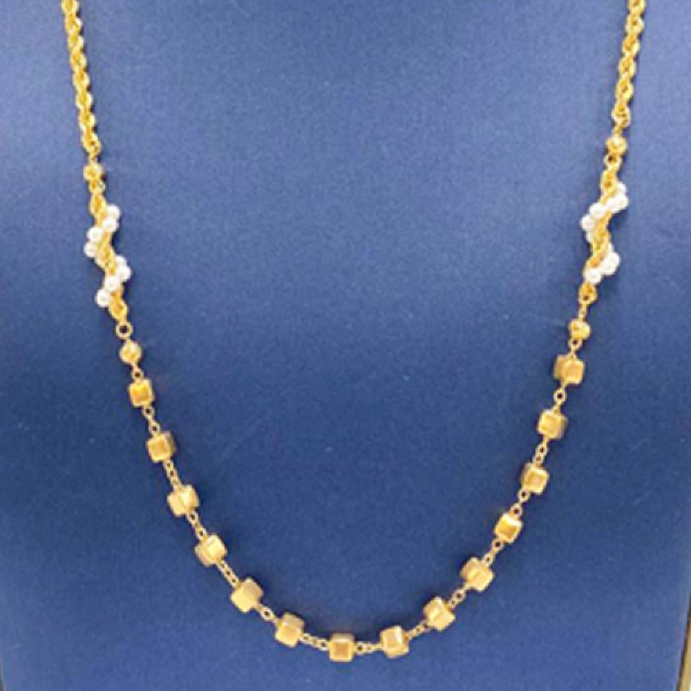 This necklace is crafted from 18-karat gold , one of the most widely used grades in fine jewelry. This karat gold combines hardness with a high luster , ensuring the necklace retains its distinctive appeal for a long time. 18-karat gold strikes an excellent balance between high quality and affordability compared to higher karat gold.