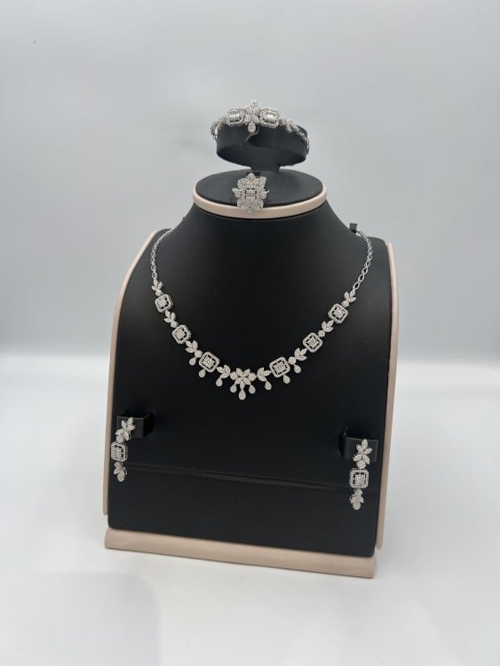 18 karat white gold set, weight 26.72 grams